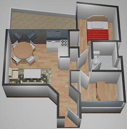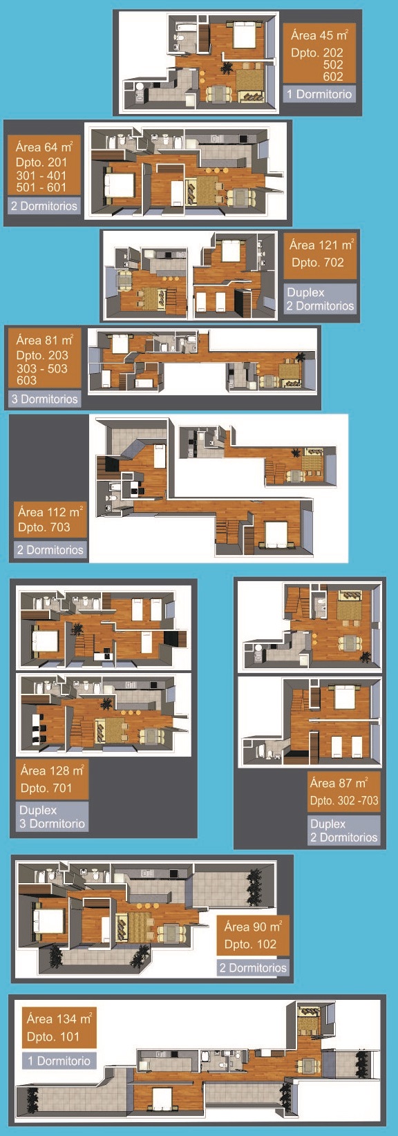 En la sala, comedor y dormitorios los zócalos serán acordes con el melamine